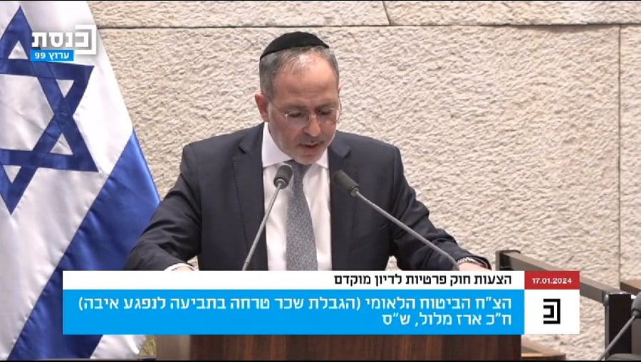 והנה ח״כ ארז מלול מש״ס מפרגן במליאת הכנסת ליועצו המשפטי עו״ד רועי אברהם על עבודתו המקצועית להעברת הצעת החוק להגבלת שכר טרחה בתביעה לנפגע איבה.