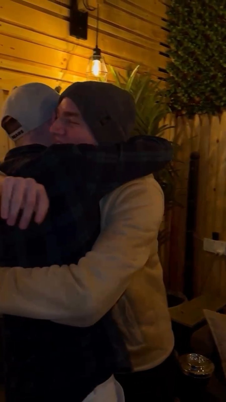 הזמר אברהם פריד ומנהלו המוזיקלי יובל סטופל מחזקים ומעודדים חולה בלובי מלון 'הילטון' בתל אביב.