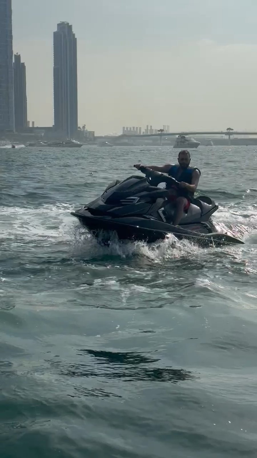 כוכב הרשת והצלם דודי קפלר - 'הפרופסור', ברכיבה על אופנוע ים במהלך נופש בדובאי.