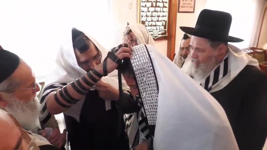 הרב הראשי לישראל לשעבר הגאון הרב ישראל מאיר לאו ועוזרו רובי זר, בעלייה לתורה בתפילת שחרית בישיבת חב"ד במיאמי, במסגרת מסע חיזוק בקהילה היהודית.