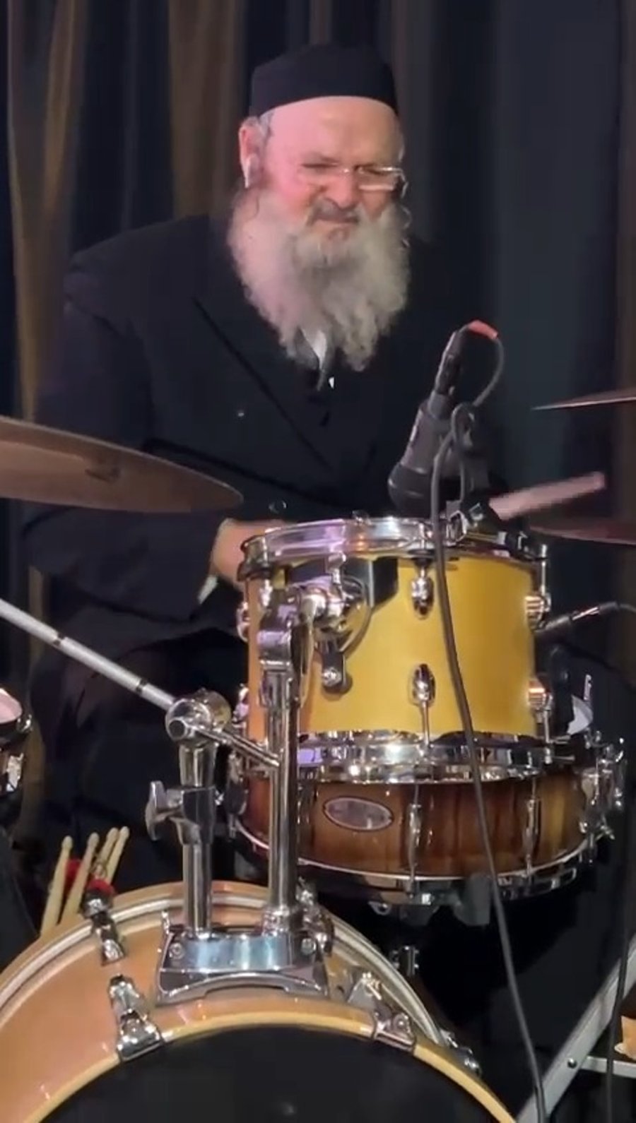 לא רק רב, גם מוזיקאי: משמח הלבבות הרב שמעון פרץ מתופף באירוע פרטי ומגלה בקיאות מרשימה על הכלי.
