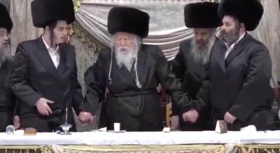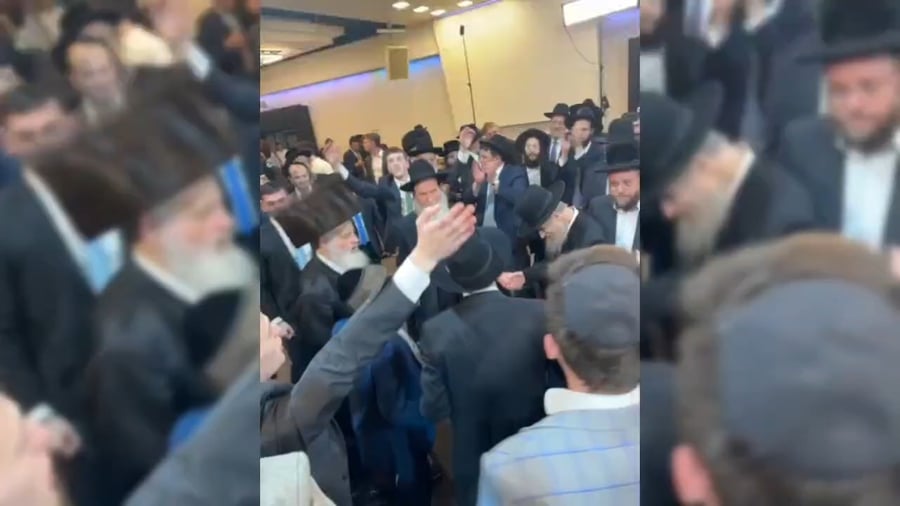 המשגיח הגאון הצדיק רבי דן סגל ומ"מ ראש עיריית ירושלים ויו"ר 'דגל התורה' בעיר אליעזר ראוכברגר, בריקוד של שמחה בחתונת איתמר טעפ מבכירי הפעילים ב'דגל התורה', שהתחתן בשנית לאחר שהתאלמן מאשתו.