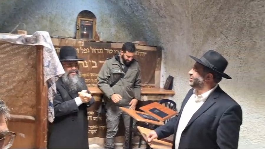 את שר ירושלים ומסורת ישראל מאיר פרוש מ'אגודת ישראל', ראינו מעתיר בתפילה בציונו של יעקב אבינו במערת המכפלה.