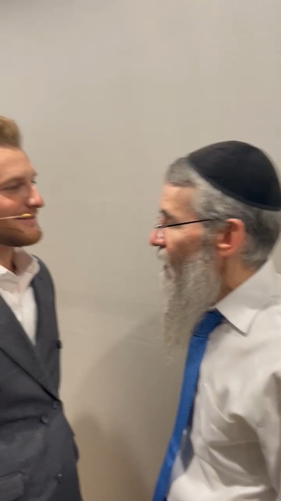 הגאון רבי יצחק דוד גרוסמן רבה של מגדל העמק וחבר מועצת הרבנות הראשית לישראל, מנשק ומקבל בחביבות את השר לביטחון לאומי איתמר בן גביר יו"ר 'עוצמה יהודית', במהלך אירוע בירושלים.