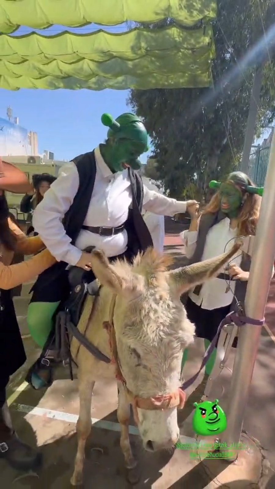 כזה עוד לא ראיתם! כוכב הרשת שוקי סלומון הפתיע את בתו נוי שהתחפשה ל'שרק' - והגיע עם חמור לבית הספר 'צביה' בבני ברק.