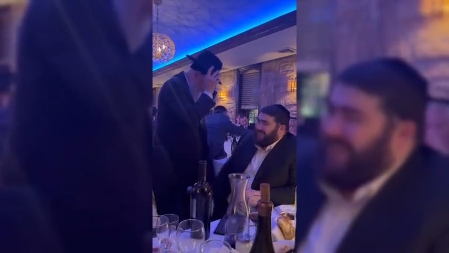 בשיאה של הסעודה ראינו את ח"כ משה גפני בריקוד סוער מלא אנרגיה ושמחה עם עוזרו האישי אלעזר מן שאוטוטו מתחתן בעזרת השם.