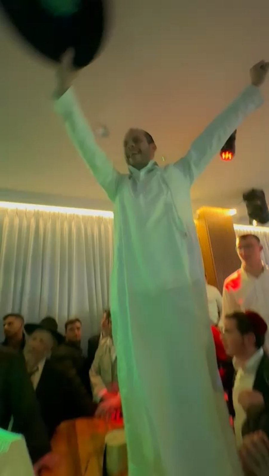 בהמשך ראינו את איש התקשורת שמעון ברייטקופף יועץ הראש העיר ירושלים, בריקוד סוער על השולחן כשהוא לבוש בג'לבייה.