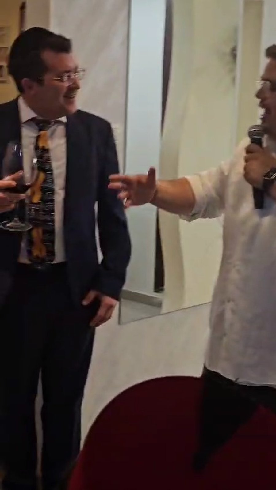 שעות קודם לכן, ראינו את הכתב הפוליטי מיכאל שמש מ'כאן 11' בלחיים במשתה הפורים בביתו מוטי בבצ'יק.