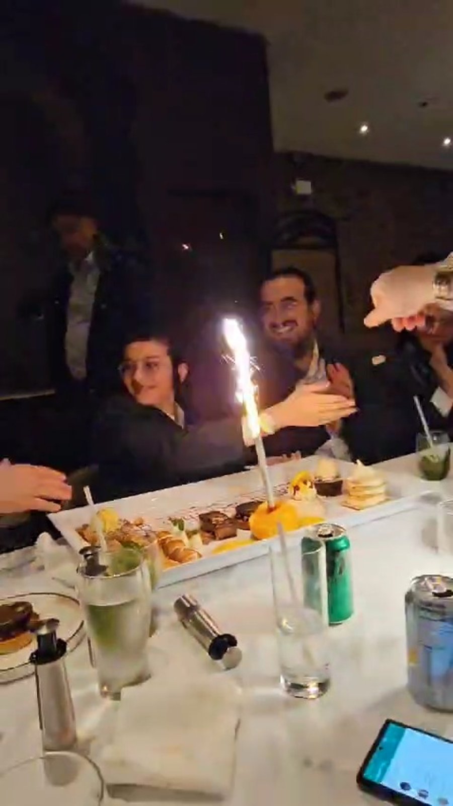בכירי תעשיית המוזיקה החסידית בחגיגות יום הולדת בהפתעה לנער הפלא הזמר בנצי קלצקין, במסעדה מקומית בבורו פארק שבארצות הברית.