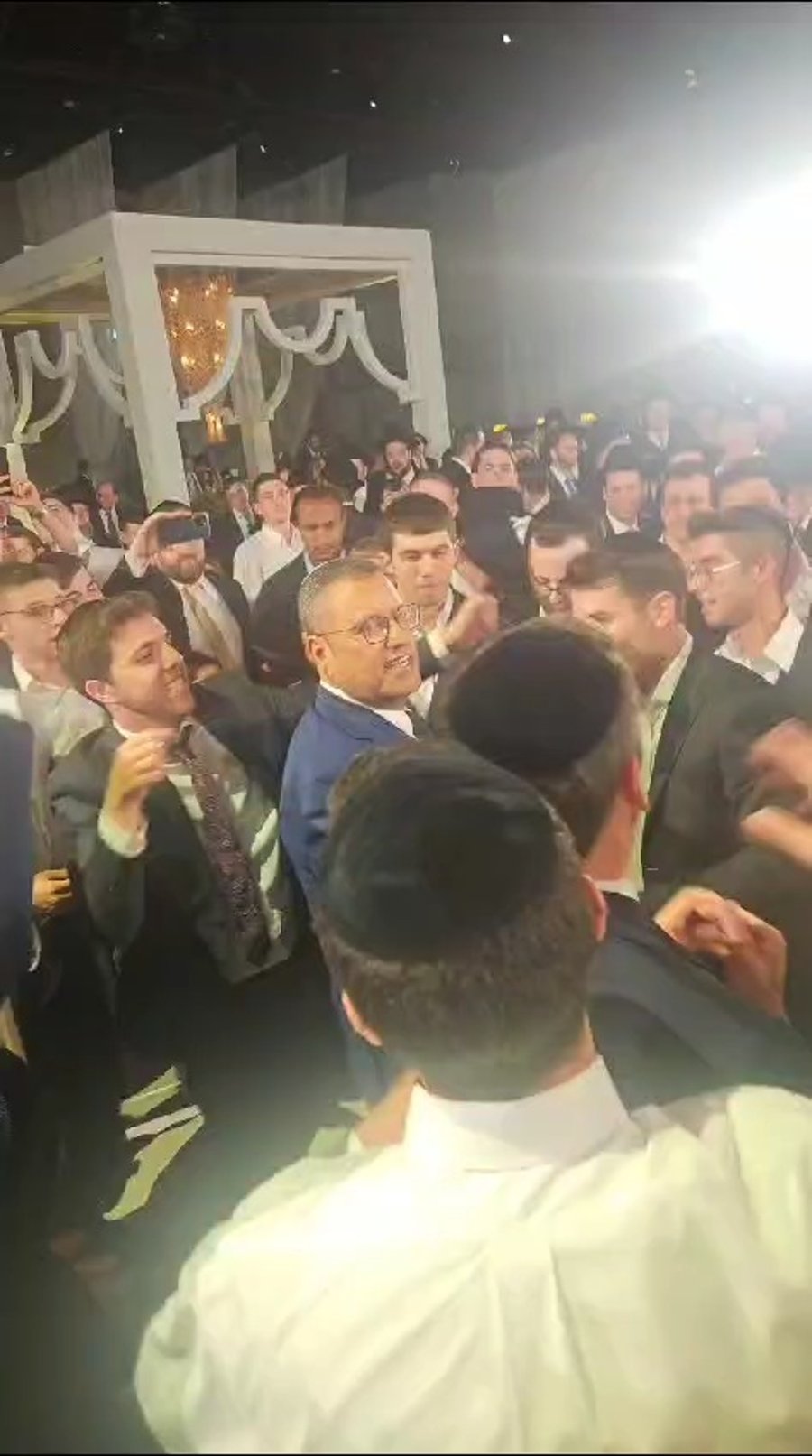 במעגל הריקודים ראינו את הגאון רבי משה יהודה שלזינגר ראש ישיבת 'קול תורה' וחבר מועצת גדולי התורה של 'דגל התורה', בריקוד של שמחה עם בני המשפחה.