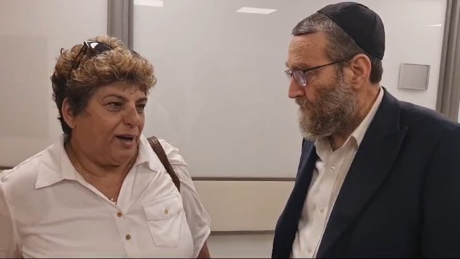 בחוץ ראינו את מנכ"ל הרבנות הראשית לישראל יהודה כהן, נותן דגימה לתרומת מח עצם.