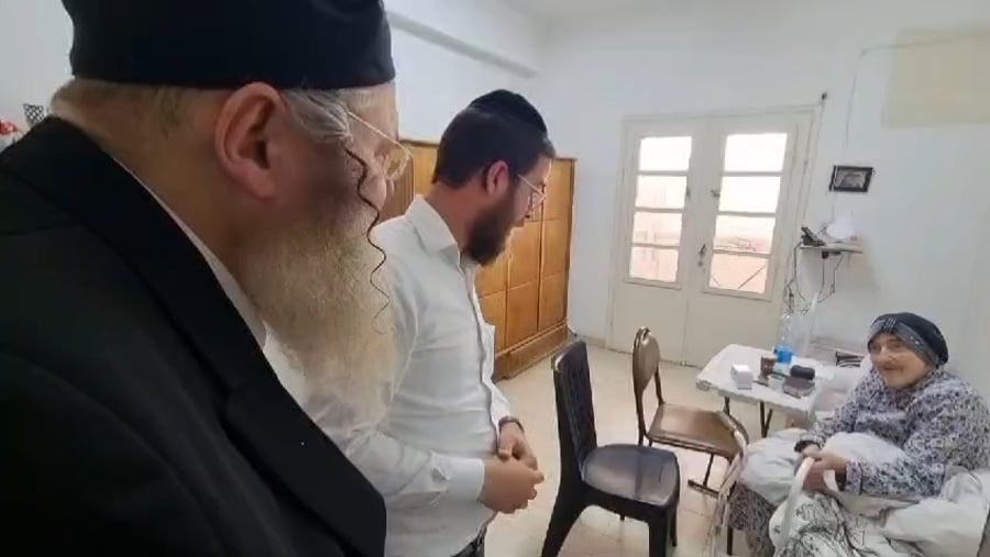 המשפיע הגאון הצדיק רבי שמעון גלאי בביקור חולים אצל מאושפזים בבית החולים 'שניידר' ו'תל השומר', כשהוא מלווה ברב של 'שניידר' הרב אשר לבי ואנשי החסד אלי ברונר וזאבי פרוינד.