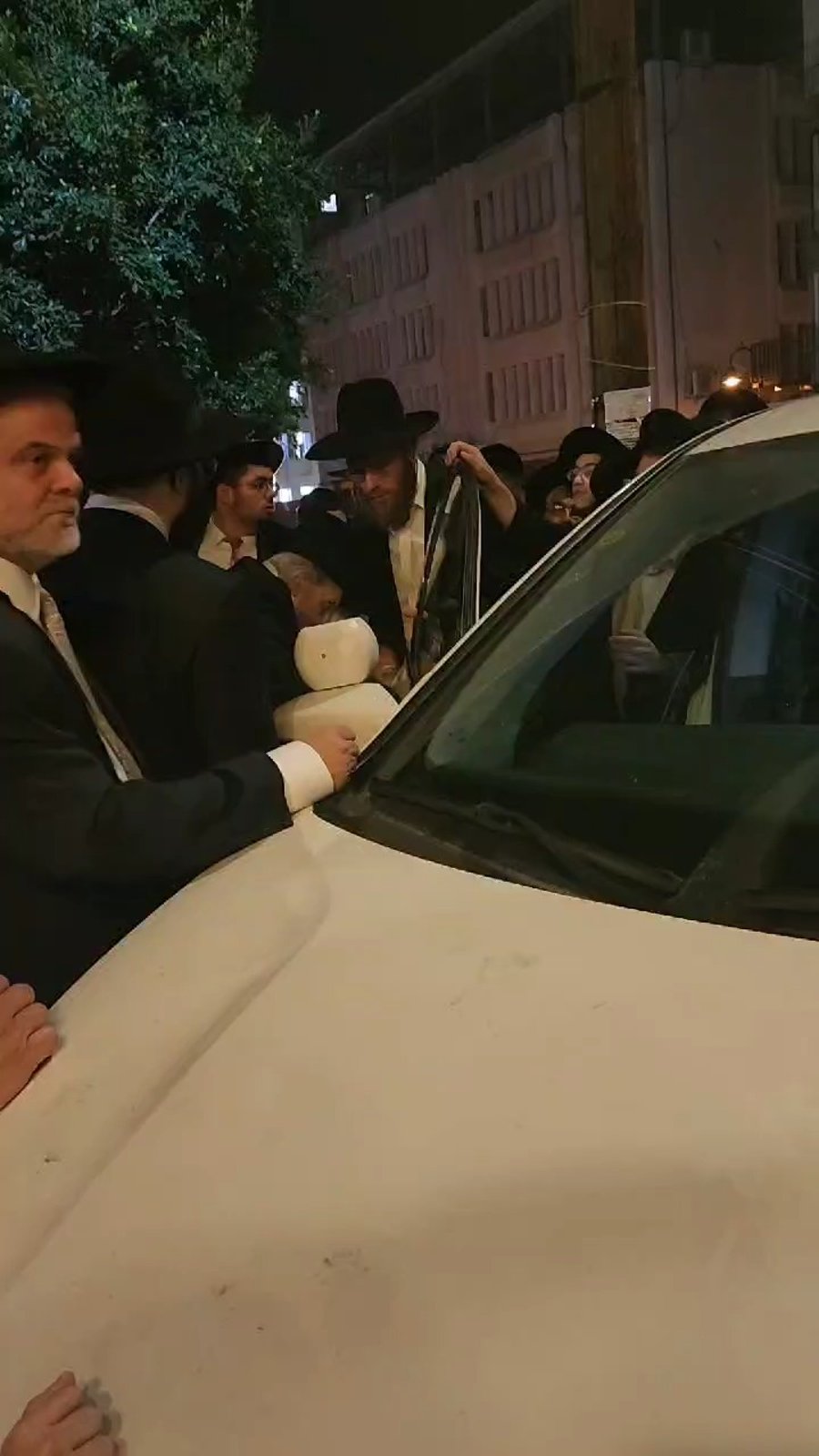 המיליארדר החרדי דן גרטלר מלווה את המנהיג הליטאי ראש הישיבה הגאון רבי דב לנדו, שהגיע להשתתף בשמחת השבע ברכות לבנו עם בתו של שלמה בנזימן מנהל מחלקת תרבות בעיריית בני ברק.