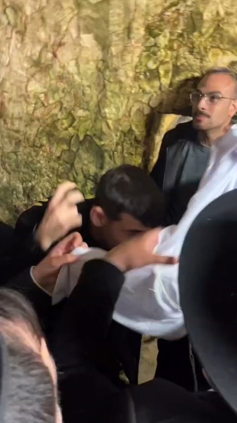 הזמר ששון איפרם שאולוב מקבל על עצמו מצוות ציצית, במהלך חגיגות יום הולדת למעבד המוזיקלי תמיר צור במערת קבר שמעון הצדיק.