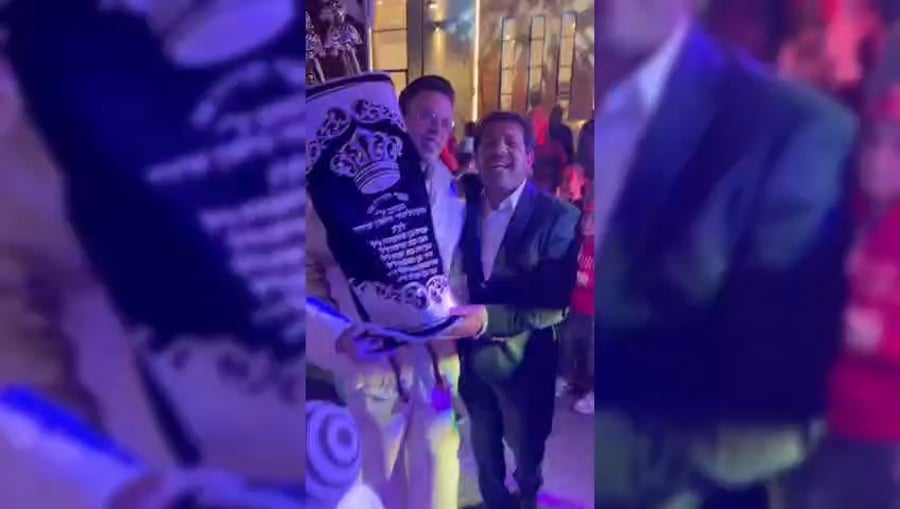 לא רק ראש עיר, גם פייטן: ראש עיריית אלעד יהודה בוטבול בשירה ופיוט יחד עם הזמר אופיר סלומון, בהכנסת ספר תורה של משפחת מכלוף מאלעד.
