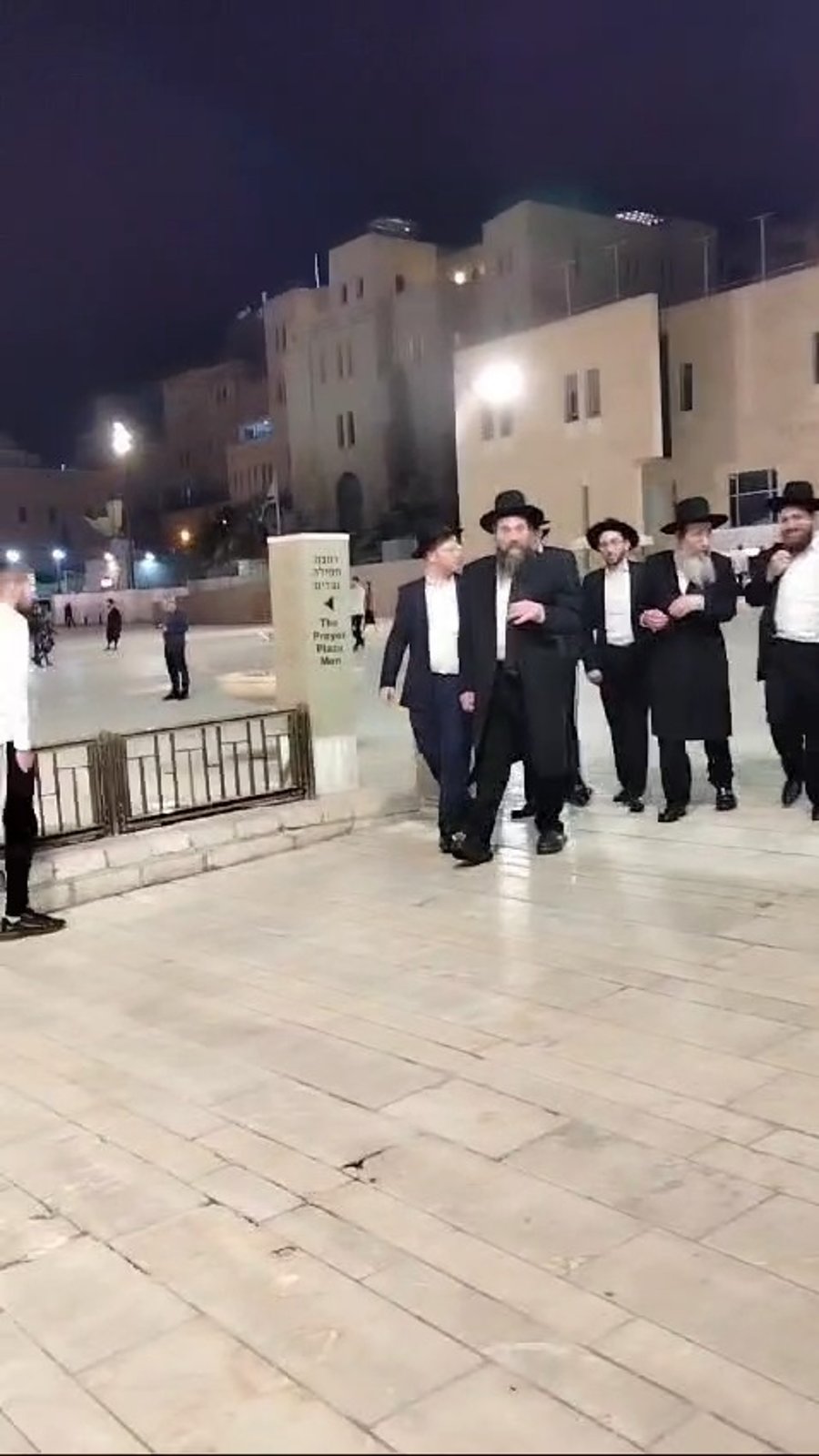 הגאון רבי אליעזר יהודה פינקל ראש ישיבת מיר וחבר מועצת גדולי התורה של 'דגל התורה' והמשגיח הגאון הצדיק רבי בנימין פינקל, מגיעים לתפילה בכותל המערבי באישון לילה.