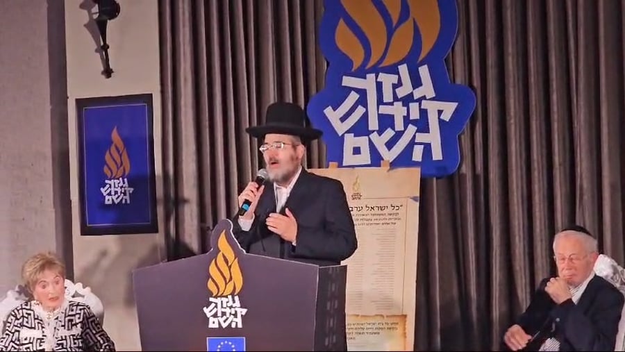 החזן ישראל אדלר מרגש את עשרות שגרירי האיחוד האירופי בישראל, בתפילת 'אל מלא רחמים' לזכר קדושי השואה, בכנס שערך מכון השואה 'גנזך קידוש השם' בעיר בני ברק.