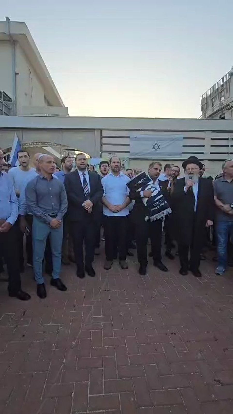 הרב שמואל אליהו רבה הראשי של צפת וחבר מועצת הרבנות הראשית לישראל, שר הנגב הגליל והחוסן הלאומי יצחק וסרלאוף מ'עוצמה יהודית' וראש העיר עכו עמיחי בן שלוש, בקבלת עול מלכות שמים, בהכנסת ספר תורה לזכרו של עמיחי שמעון רובין הי"ד שנפצע קשה במלחמת שמחת תורה ונפטר מפצעיו לאחר זמן קצר.