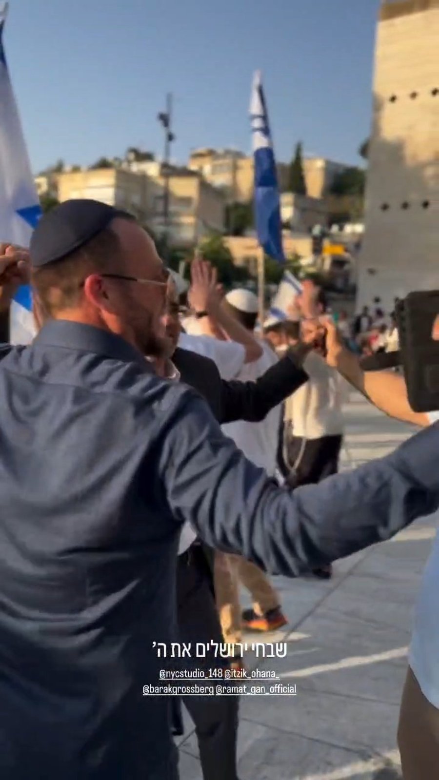 הזמר שוקי סלומון שהופיע יחד עם המוזיקאי ברק גרוסברג בחגיגות 'יום ירושלים' ברמת גן, נצפה בריקוד עם גדליהו בן שמעון יו"ר המועצה הדתית בעיר ומשה רביבו מנהלת מחלקת תרבות תורנית.