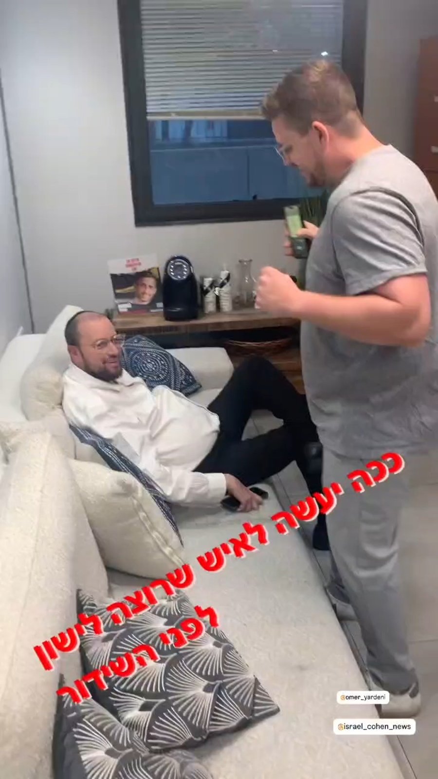 משעשע! כשמגיש הטלוויזיה עומר ירדני העיר עם מוזיקה את הפרשן החרדי ישראל כהן שנרדם רגע לפני תכנית 'העולם הבוקר' ב'רשת 13'.