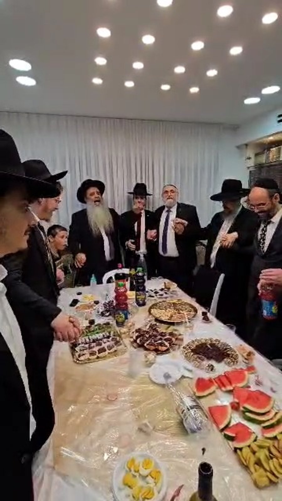 הגאון הרב רפאל זר ראש מוסדות 'קרבנו לעבודתך' בריקוד של שמחה באירוסי בתו. 'זופניק' צפה בזמר מידד טסה משתתף בשמחה.