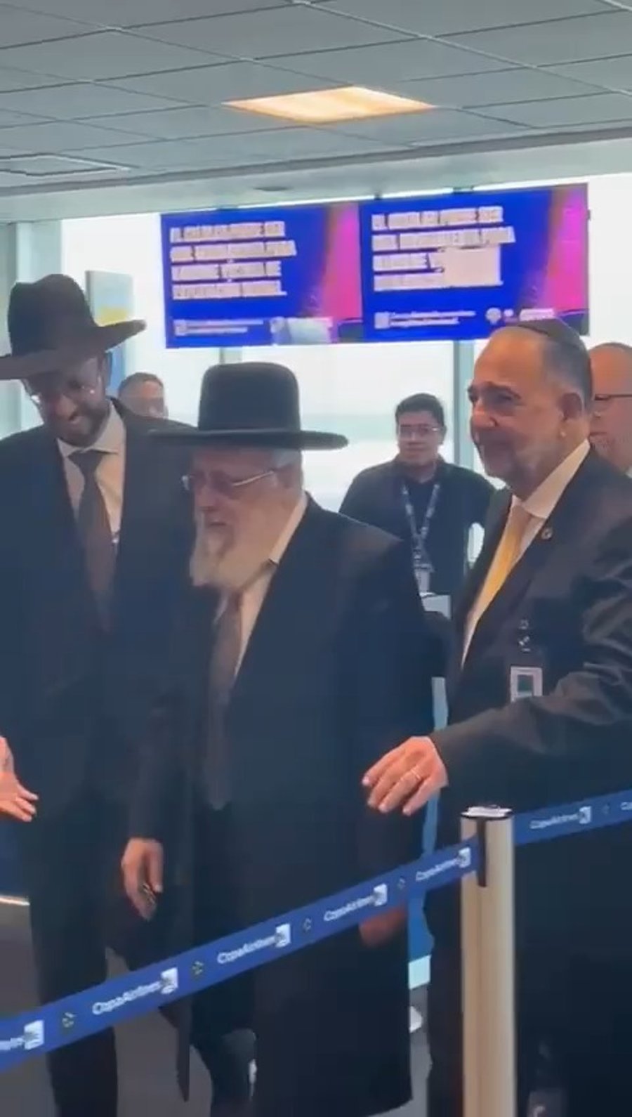 הראשון לציון הגאון רבי יצחק יוסף שטס למסע חיזוק בקהילה היהודית בפנמה - התקבל באהדה בשדה התעופה המקומי. בתיעוד נראים רבני הקהילה היהודית, אנשי עסקים והמיליארדר המקומי שאול עסיס.