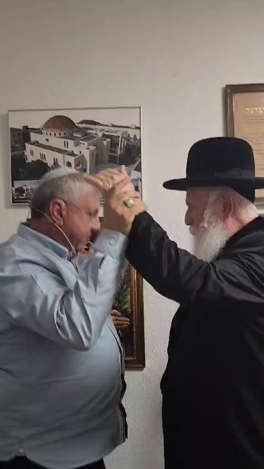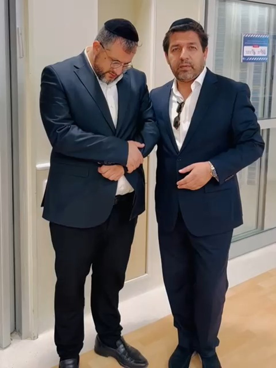 איש התקשורת יעקב ברדוגו בשירה וריקוד עם הגאון רבי יצחק דוד גרוסמן רבה של מגדל העמק וחבר מועצת הרבנות הראשית לישראל: "צווה ישועות יעקב", רגע לפני ראיון ב'ערוץ 14'.
