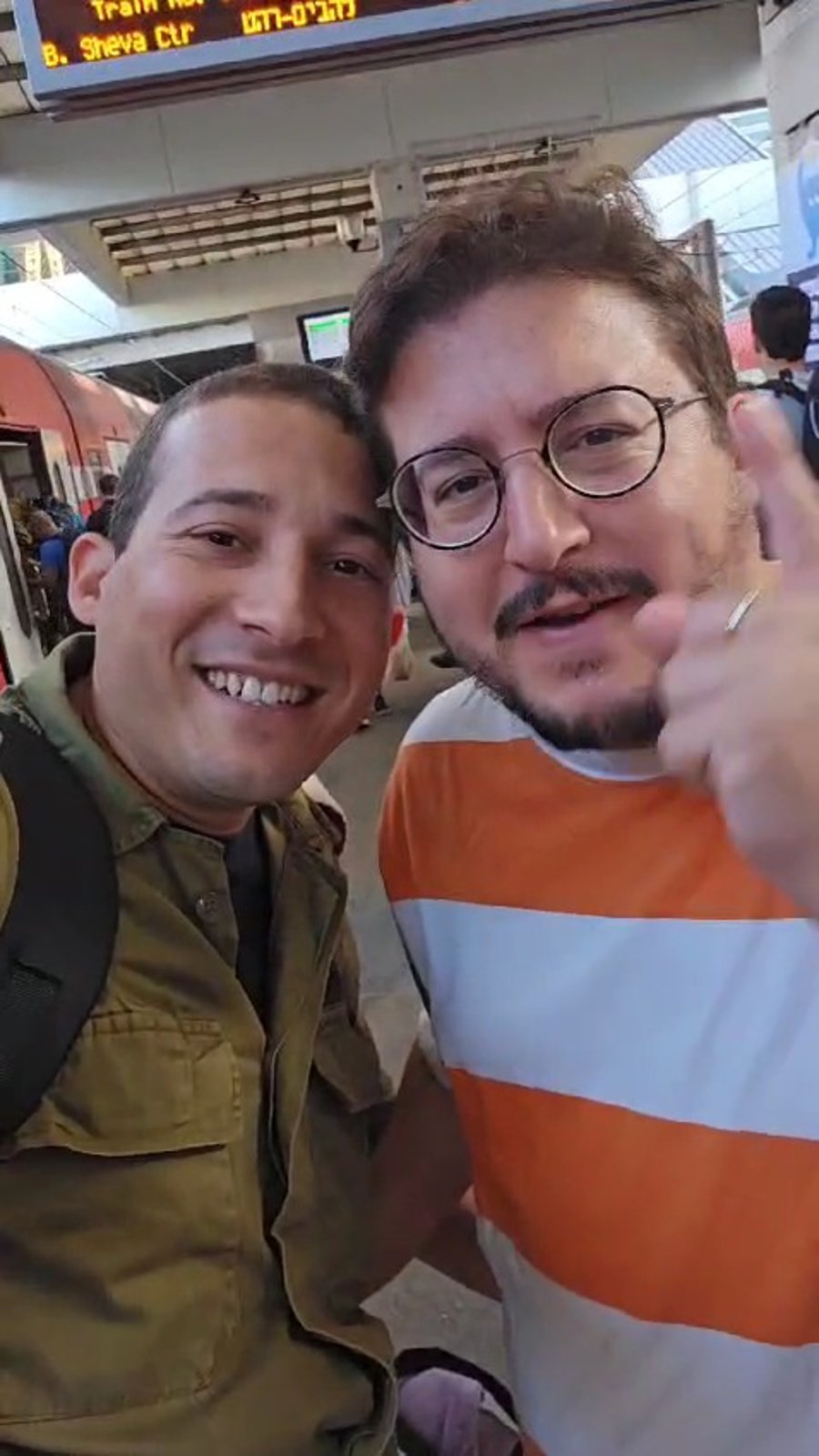 ח"כ בועז ביסמוט מ'הליכוד' ואלחנן דנינו שבנו אורי דנינו הי"ד נרצח בשבי חמאס בעזה, בשדה התעופה בנתב"ג בדרכם למסע הסברה בחו"ל.