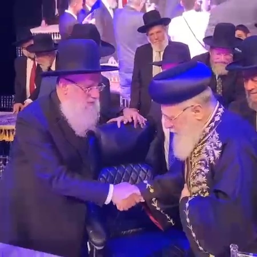 שבת אחים 2: הראשון לציון הגאון רבי יצחק יוסף ואחיו חבר מועצת חכמי התורה של ש"ס והמועמד לתפקיד הראשון לציון הגאון רבי דוד יוסף, בלחיצת יד חמה, ארוכה וממושכת, במעמד הכתרת הגאון הרב דוד כהן לרב העיר גן יבנה.