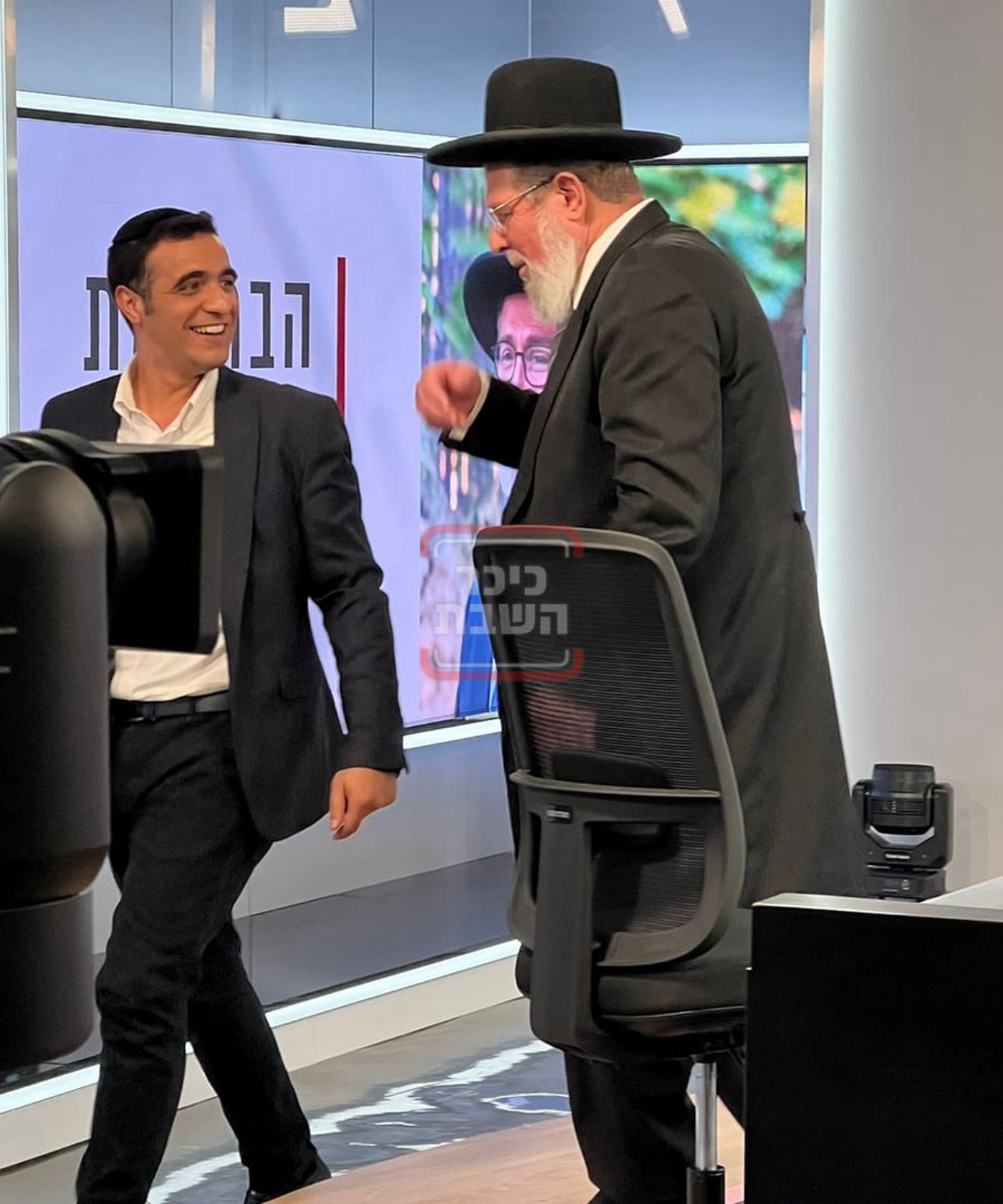'זופניק' שבא לבקר באולפני 'כיכר השבת' החדשים תפס את פרשן 'כיכר' ישי כהן מאושר אחרי הריאיון עם הגאון רבי קלמן בר שמחכה עם החיוך עד תוצאות הבחירות ביום ראשון ב-19:30.