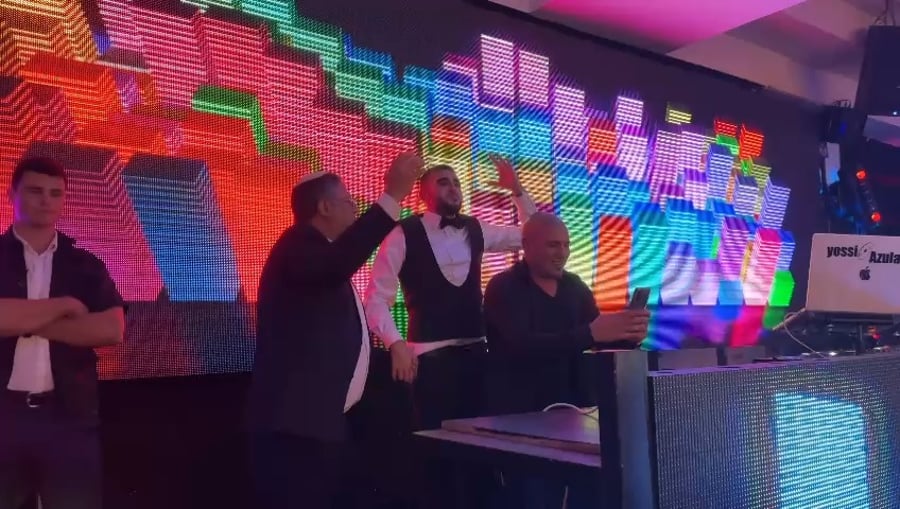 בתחילת האירוע תפסנו את החתן יאיר אילוז בתמונה משותפת עם יו"ר ש"ס ח"כ אריה דרעי, אביו הרב משה אילוז ואחיו.