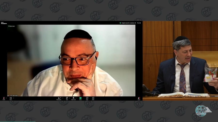 בהמשך השיעור, ראינו את הרב אלי סטפנסקי מציג שקית יום הולדת למבוגרים שחילק איש יחסי הציבור קובי סלע לרגל יום הולדת ראשון שלו בדף היומי.