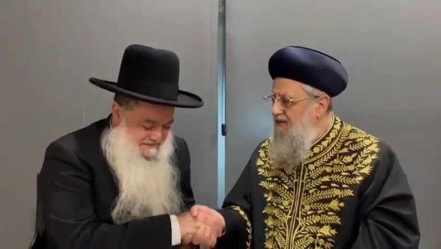 האדמו"ר מגור והראשון לציון הגאון רבי דוד יוסף בסוד שיח עם מנכ"ל הרבנות הראשית לישראל יהודה כהן, בשמחת בית גור.
