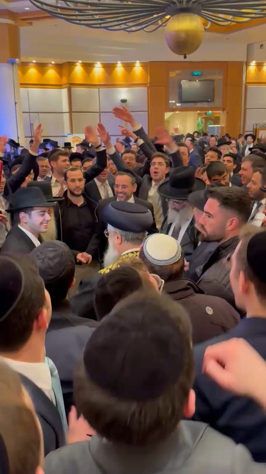 ברחבת הריקודים ראינו את הראשון לציון הגאון רבי דוד יוסף והגאון רבי ישראל אברג'ל בריקוד סוער עם החתן ואביו.