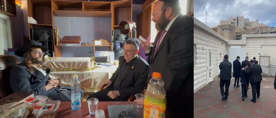 בשולחן הכבוד ראינו את שר הביטחון ישראל כ"ץ מתברך מהאדמו"ר רבי יחיאל אבוחצירא רבה של רמלה.