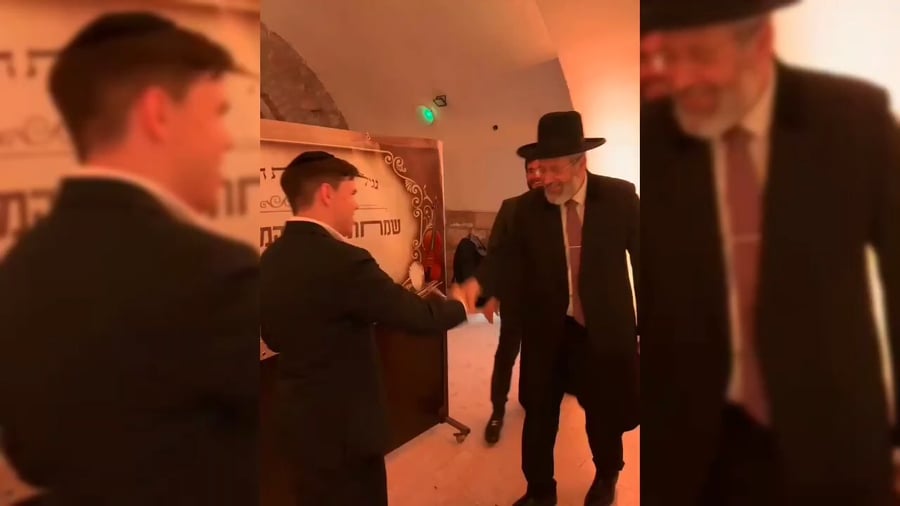 הרב הראשי לשעבר הגאון רבי דוד לאו בריקוד ודברי תורה בסיום מסכת שערך המפיק אלכסנדר הוכברגר בבית הכנסת העתיק במוצא.