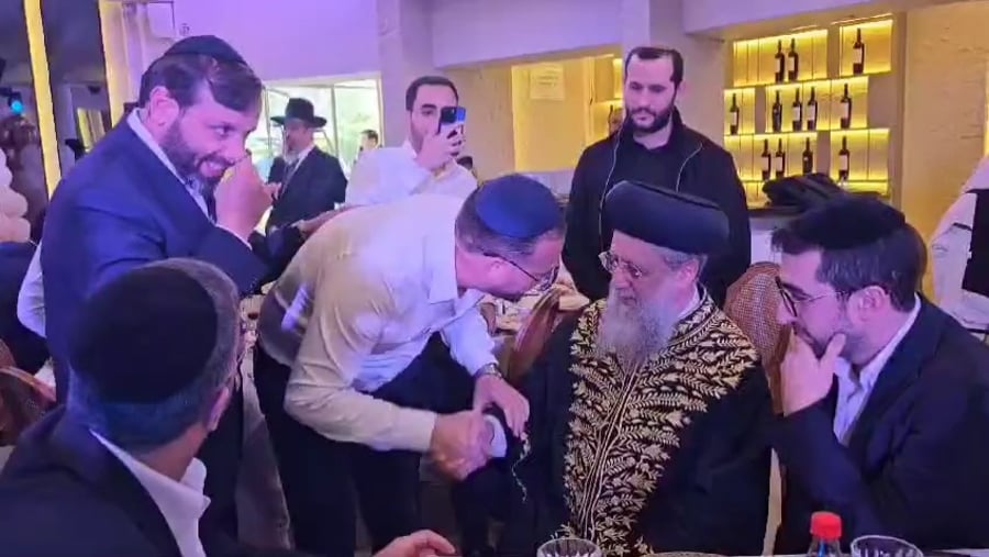 בשמחת הברית ראינו את יוסי עבדו, מגיש 'החדשות הלא באמת חשובות' בסוד שיח עם האדמו"ר רבי פנחס אבוחצירא והראשון לציון הגאון רבי דוד יוסף.