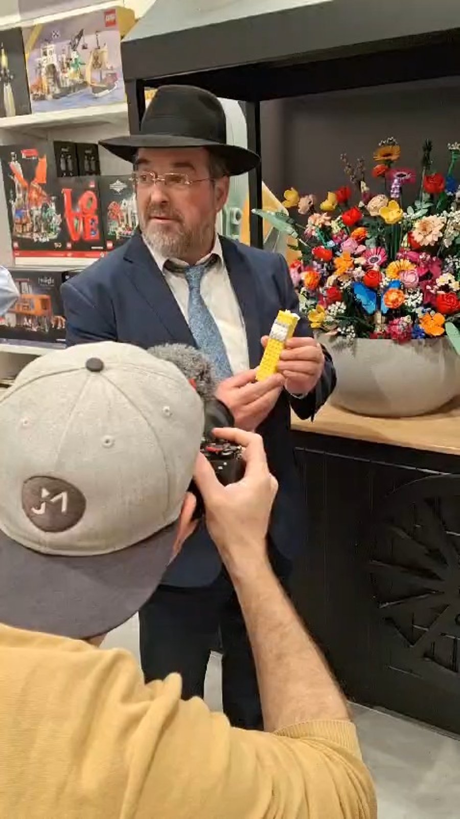 הרב חיים הורוביץ רבה של שכונת צהלה בתל אביב, בקביעת מזוזה מהודרת עם בית מזוזה מלגו בקניון איילון: "לא יצא לי אף פעם לנשק מזוזה מלגו".