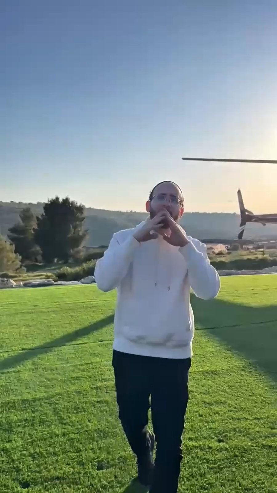 הזמר פיני איינהורן עולה על מסוק מאירוע בוטיק בצפון להופעה בחתונה במרכז הארץ.