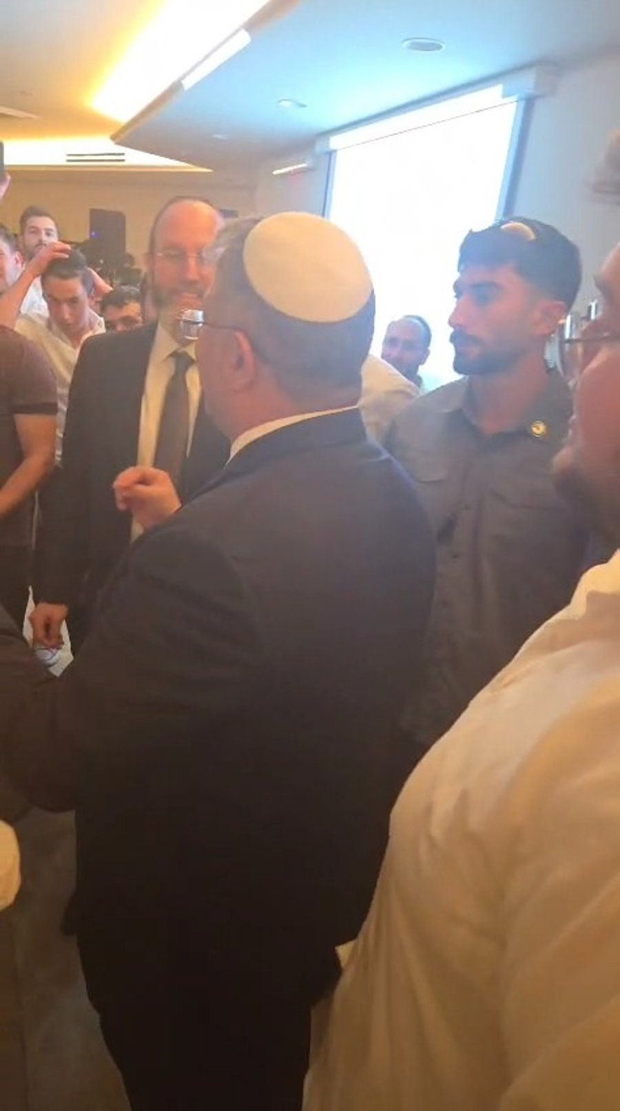 בכניסה לבית הנשיא ראה 'זופניק' את אבי תנועת הקירוב הגאון רבי יצחק דוד גרוסמן מעניק חיבוק חם לשבי רפפורט.