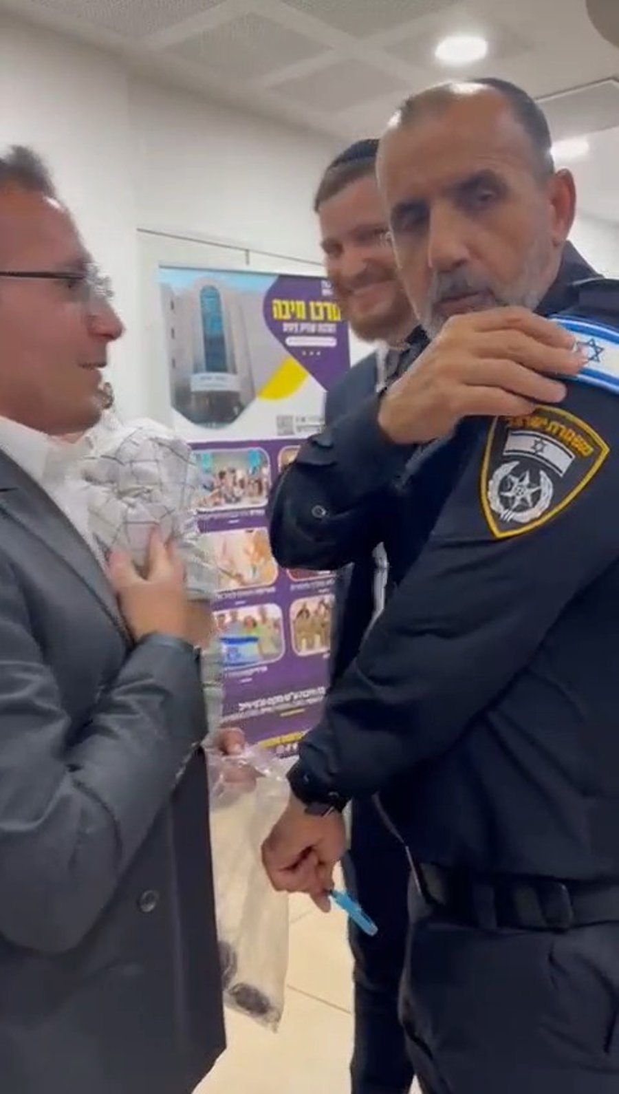 כשמפכ"ל המשטרה רב ניצב דני לוי הסיר מחולצתו את פאצ' דגל ישראל והעניק לבנו של העסקן אבי רפאלי מ'איחוד הצלה' שחגג חלאק'ה.
