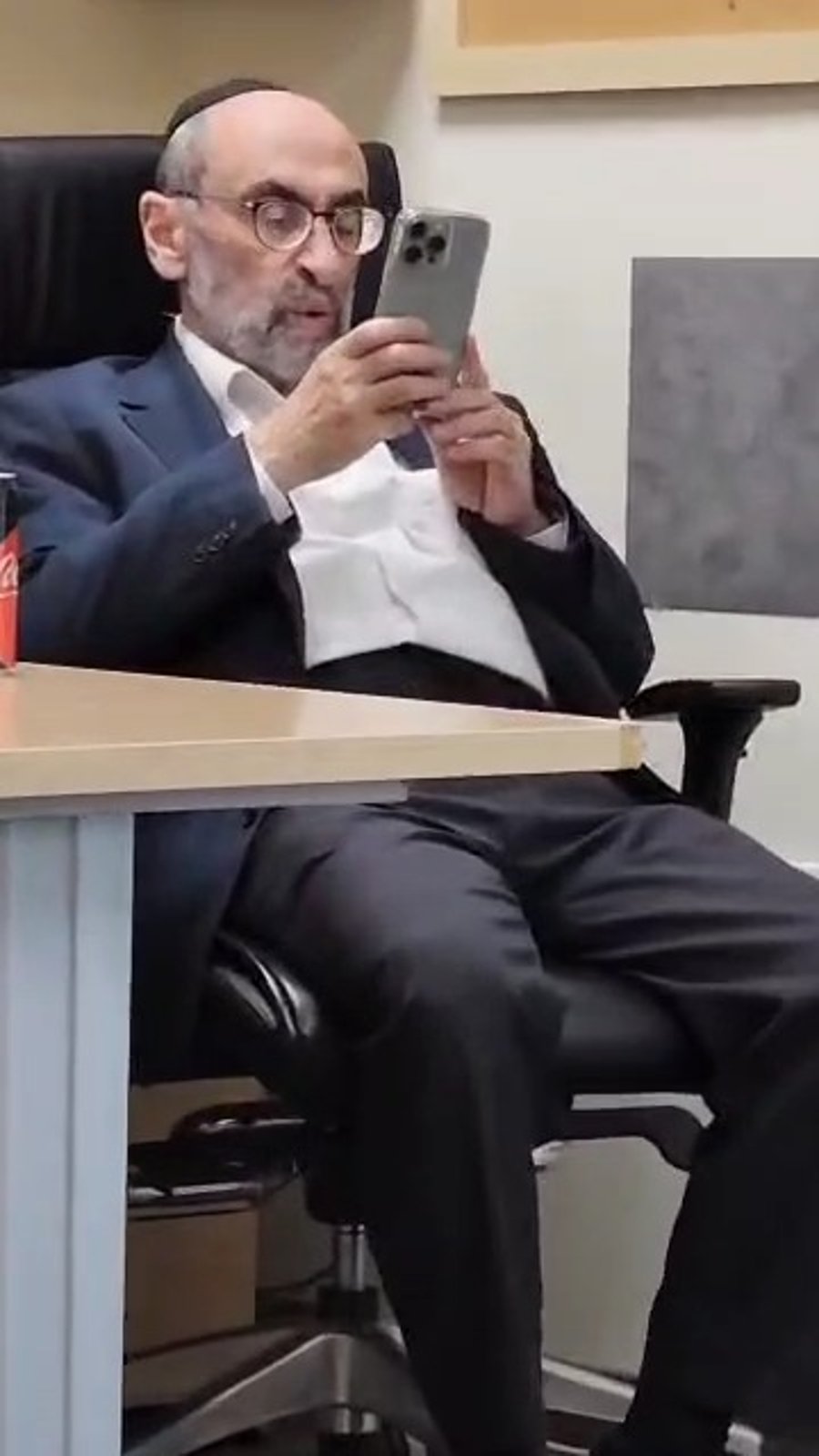 והנה זקן הפרשנים החרדיים, יעקב ריבלין, שקוע במכשיר הטלפון בדרך לעוד הדלפה עסיסית.