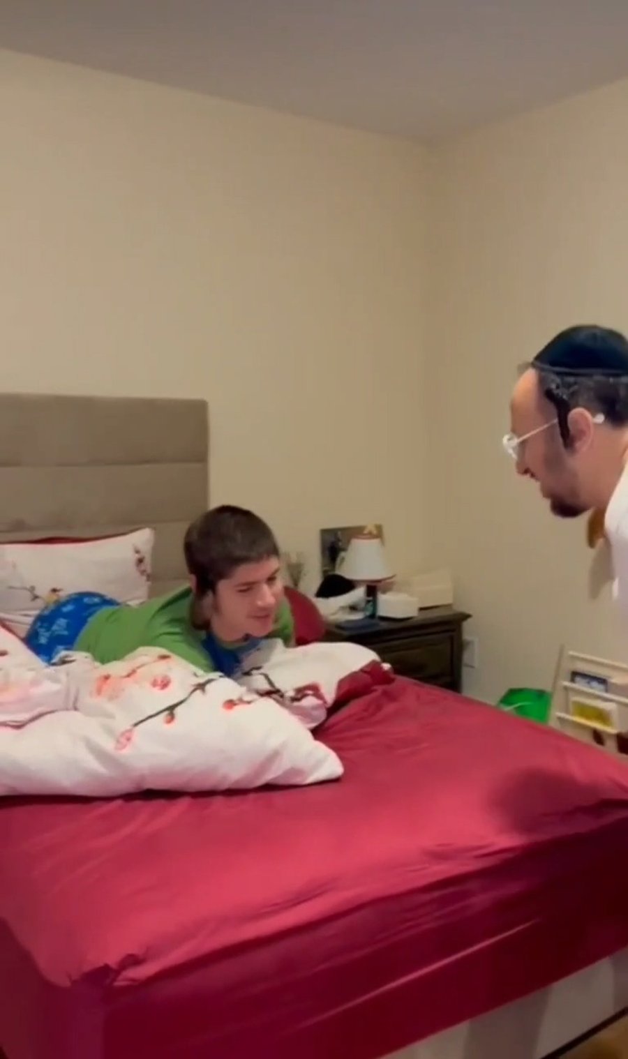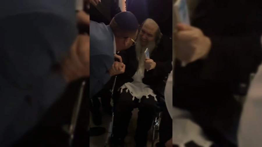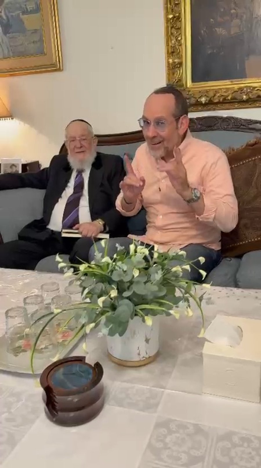 כשהזמר ישי לפידות הפתיע את הרב הראשי הרב ישראל מאיר לאו בשירי יום הולדת 88, במהלך צילום ריאיון.