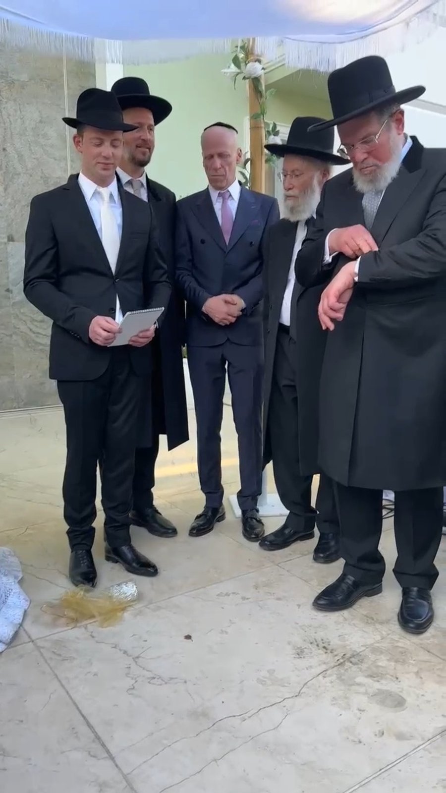לאחר החופה ראינו את הראשון לציון הגאון רבי דוד יוסף והרב הראשי לישראל הגאון רבי קלמן בר, בסוד שיח עליז, מאחור נראה איתי גדסי ראש לשכתו של הראשון לציון.