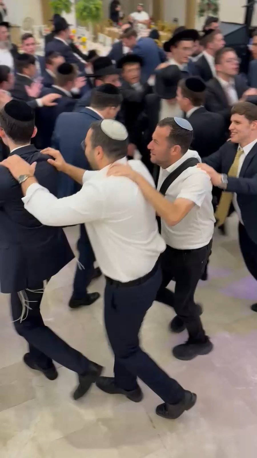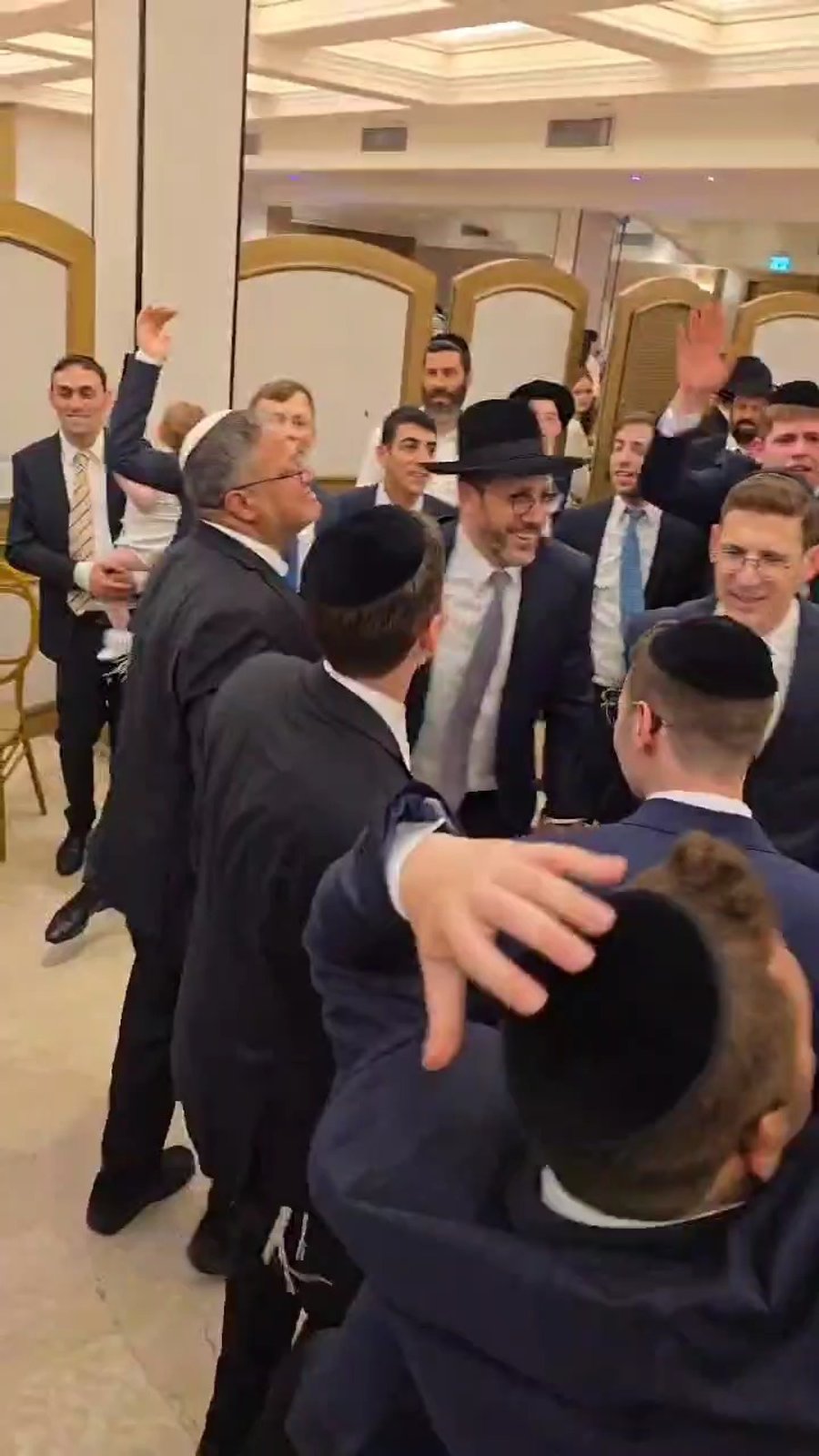 לאחר מכן ראינו את שר הנגב הגליל והחוסן הלאומי יצחק וסרלאוף וראש מועצת שומרון יוסי דגן, בריקוד רכבת עם בחורי הישיבה חבריו של החתן.