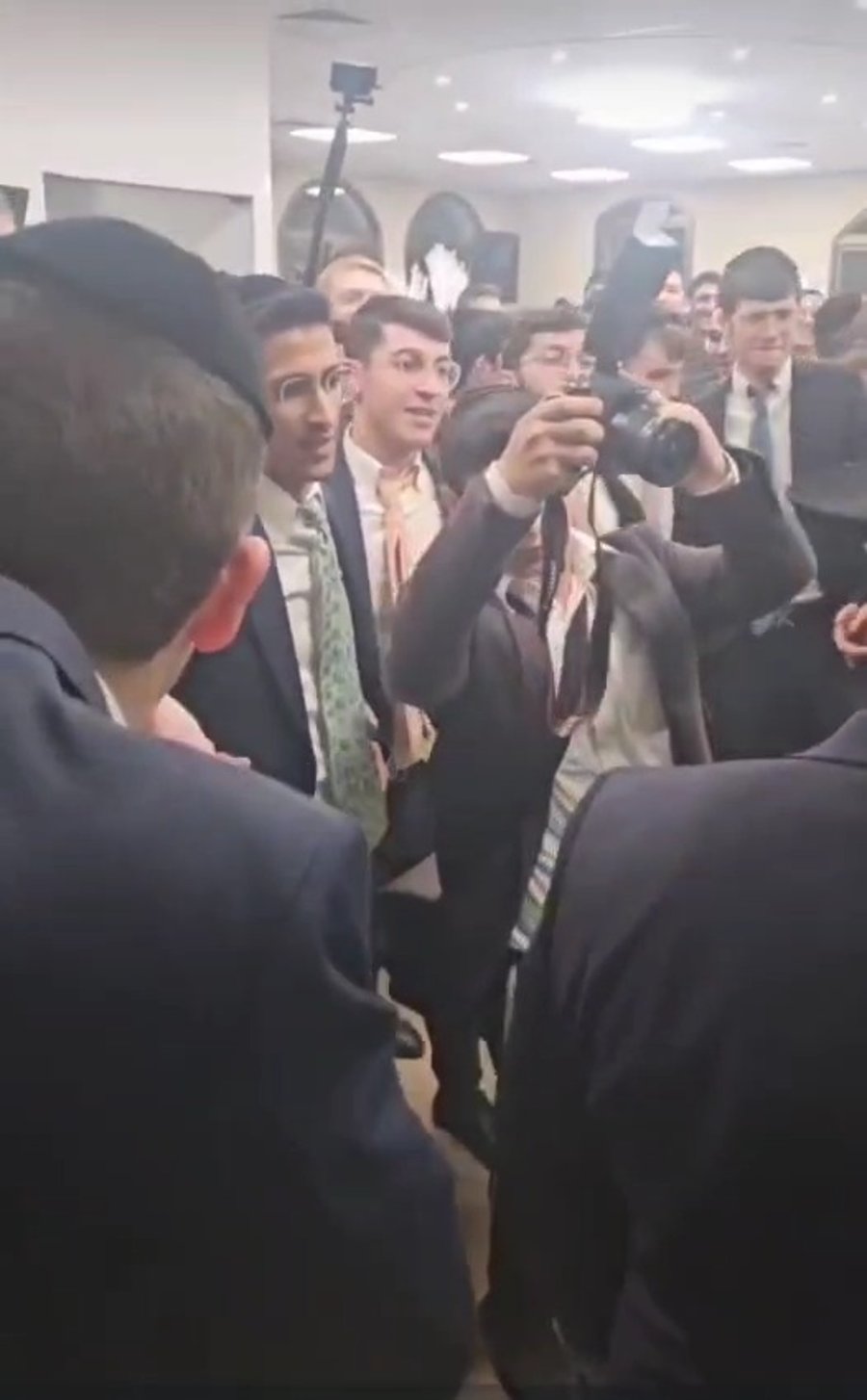 את כוכב הרשת והצלם שלומי כהן ראיני בשיחה ערה עם המפיקים המוזיקליים מוישי ביכלר ועוזר דרוק, בחתונת בנה של אשת הנדל"ן רחל לויטן, באולמי 'וואלי'.