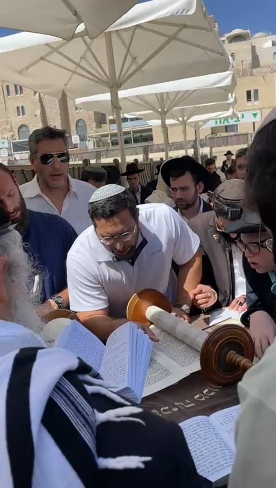 שר הנגב הגליל והחוסן הלאומי יצחק וסרלאוף, קורא בתורה בתשעה באב ברחבת הכותל המערבי.