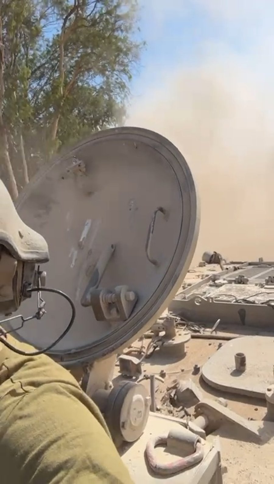 איש התקשורת יהודה אהרוני, הכתב לענייני חרדים של 'ערוץ 14' - שהתגייס למילואים בגבול עזה, בנסיעה על טנק.
