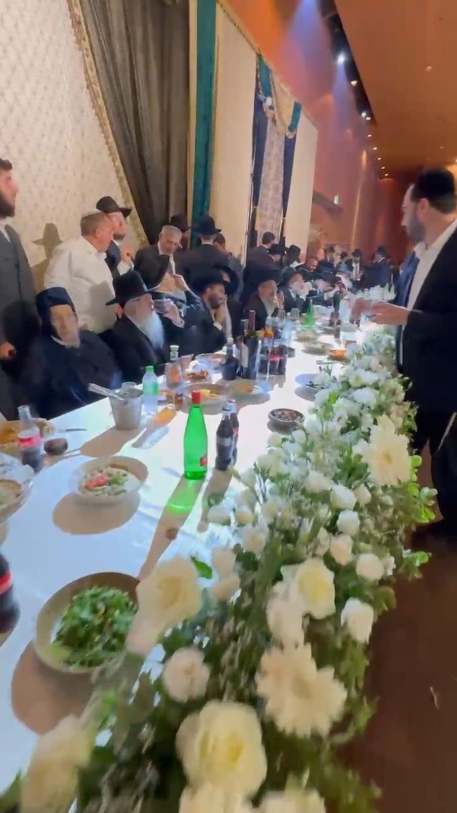 בשולחן הכבוד ראינו את האדמו"רים רבי משה אבוחצירא, רבי פנחס אבוחצירא ורבי יצחק יהודיוף, בסוד שיח תורני.