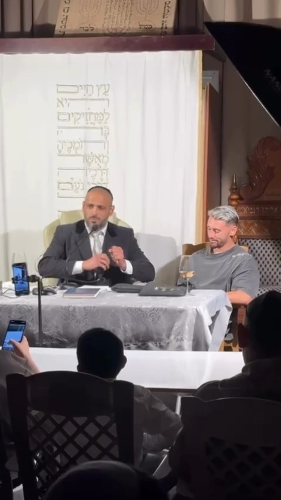 הזמר אברהם פריד והחזן יצחק מאיר הלפגוט נצפו עם שר האוצר בצלאל סמוטריץ' באירוע של 'חסידות בקלאס' ב'תיאטרון ירושלים' בהפקת יצחק ראשי, מהצד נראה המוזיקאי יוסי גרין.
